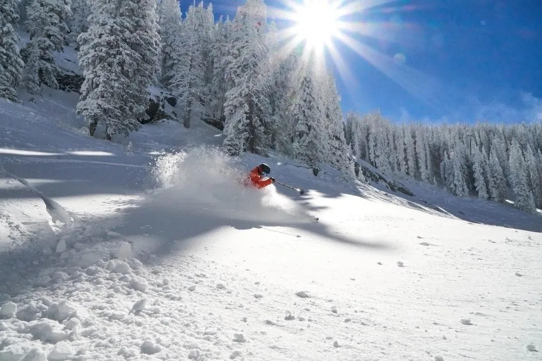 Skier getting deep turns in the New Mexico sunshine. Credit: Ski Santa Fe Instagram #3 Angel Fire ResortLocated in the beautiful Moreno Valley in northern New Mexico, Angel Fire Ski Resort is a popular destination for skiers and snowboarders looking to hit the slopes in a picturesque setting. With over 560 skiable acres and a peak elevation of 10,677 feet, Angel Fire offers a range of terrain for skiers and snowboarders of all skill levels. Angel Fire Ski Resort is known for its family-friendly atmosphere, with a range of programs and activities for kids and families. The resort features a ski school that offers lessons for children as young as three years old, as well as a kids' snowmobile park and a tubing hill. For adults, there are plenty of challenging runs and terrain parks to enjoy. One of the highlights of Angel Fire Ski Resort is its terrain park, which offers a range of features and jumps for freestyle skiers and snowboarders. The resort also offers night skiing on select trails, allowing visitors to enjoy the slopes even after the sun goes down.See our full breakdown on Angel Fire Resort