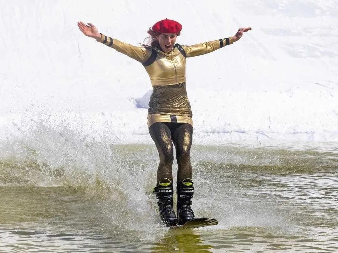 Crested Butte Mountain Resort in Colorado wrapped up a historic ski and ride season over the weekend with a variety of activities, including live music, fun events, and plenty of bizarre costumes. This year, the resort experienced an impressive 325.5 inches of snowfall, which is the third-highest snow total recorded since 1989.One of the highlights of the weekend was the annual Pond Skim event, which raised funds for Crested Butte State of Mind. Spectators watched as participants attempted to ski or snowboard across a man-made pond while wearing entertaining outfits. Those who successfully skimmed across the pond received recognition, and all participants received a rubber ducky from the Bud Light Prize Zone, which included prizes from Oakley, Helly Hansen, and Bud Light partners. DJ Red, also known as former Olympian Wendy Fischer, provided the music, followed by an after-party at Butte 66 with Easy Jim.