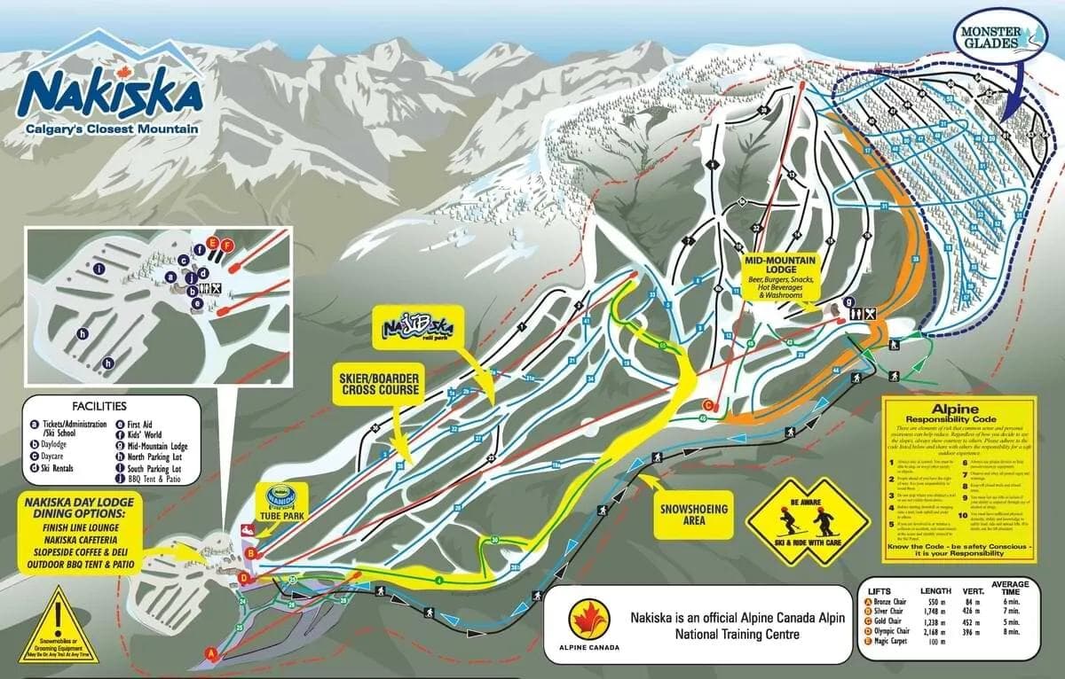Looking at the Mid Mountain Lodge, the best place to stop for a break and snack at Nakiska Ski Resort. Elevation: 1,910m (6,266ft) Check the cams View this post on Instagram A post shared by Nakiska Ski Area (@nakiskaskiarea) Opening weekend at Nakiska, November 4 & 5:Lifts:Olympic (upload and download) 10:00 AM – 5:00 PM with last upload 2:00 PMGold Chair: 10:00 AM – 3:30 PMTicketing:9:30 AM – 1:00 PMGuest Services – 9:00 AM – 4:30 PMRetail – 9:00 AM – 4:00 PMFood and Beverage:Mid Mountain – full service 10:00 AM – 4:00 PM. Lodge will be open until all people have downloadedDaylodge Slopeside – extended service 9:00 AM – 5:00 PMSkiing and riding will be on the upper mountain only, with up and downloading the Olympic Chair to and from mid-mountain.Intermediate and expert terrain onlyGroomed Runs: – Upper Mapmaker, Middle Mapmaker, Mid Mountain, Olympic Easy Way, Amphitheatre, Morley Flats, Gold Road.Natural Snow Terrain: – Upper, Middle, Lower, and New Glades, Walking Buffalo – Early season conditions, natural hazards existBig Bear Run is TBD; it will be a last-minute callPricing: will be confirmed shortly.