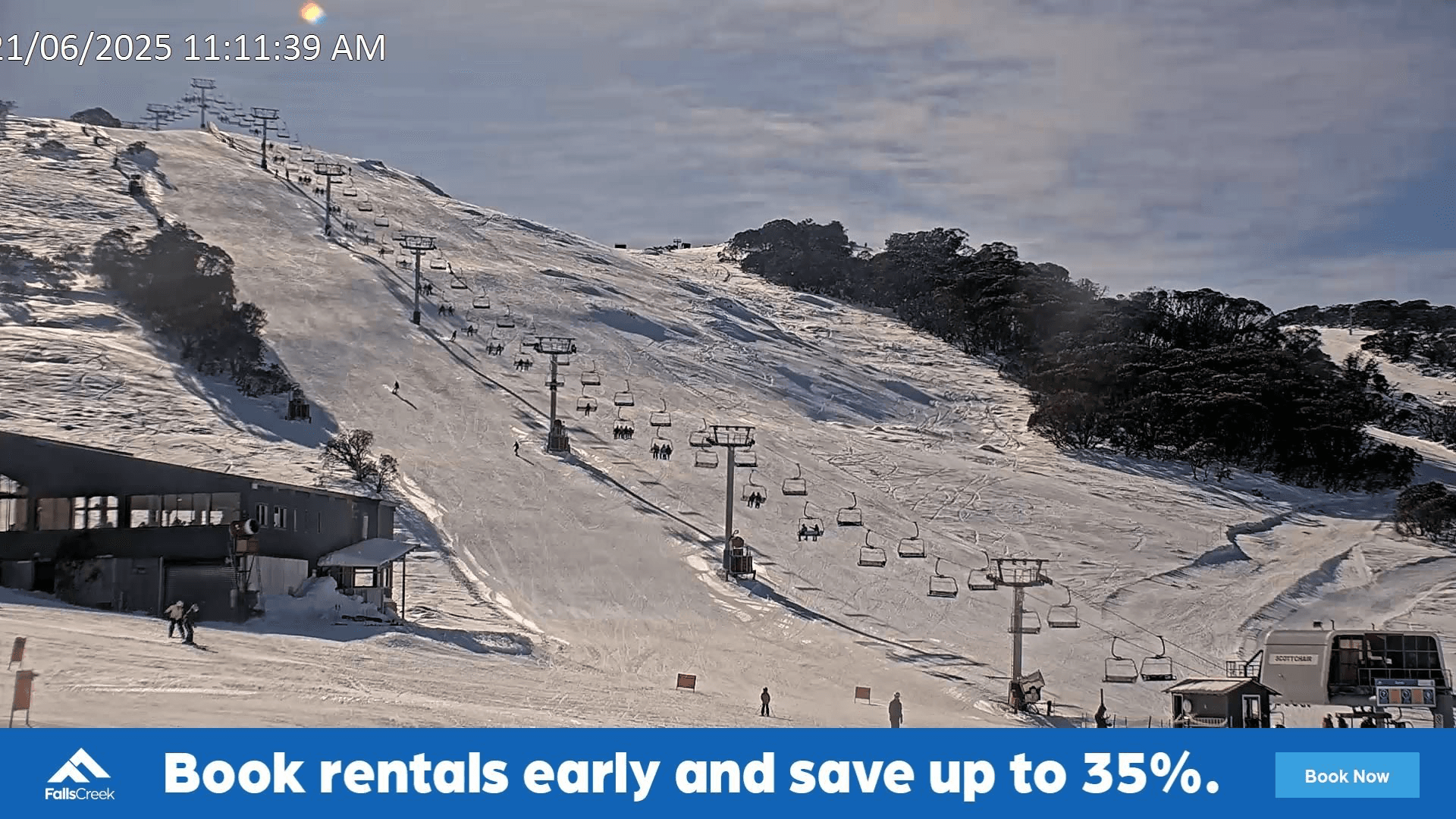 Weather conditions at Falls Creek are favourable for skiing and snowboarding. Saturday's forecast predicts mostly sunny skies with light winds and temperatures ranging from 1°C to 7°C. These conditions are ideal for enjoying the newly opened terrain.